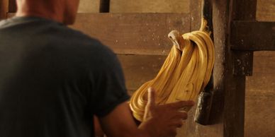 No Ceará, estado que lidera a produção de rapadura no Brasil, os engenhos ainda funcionam de maneira rústica e manual, como no Sítio Labirinto, onde o som do moer da cana ecoa pelas serras e a fumaça do tacho quente dança no ar, perfumando o ambiente com cheiro de infância e passado. A produção exige força, tempo e cuidado – um ritual que transforma o caldo espremido da cana em blocos firmes, doces e dourados.